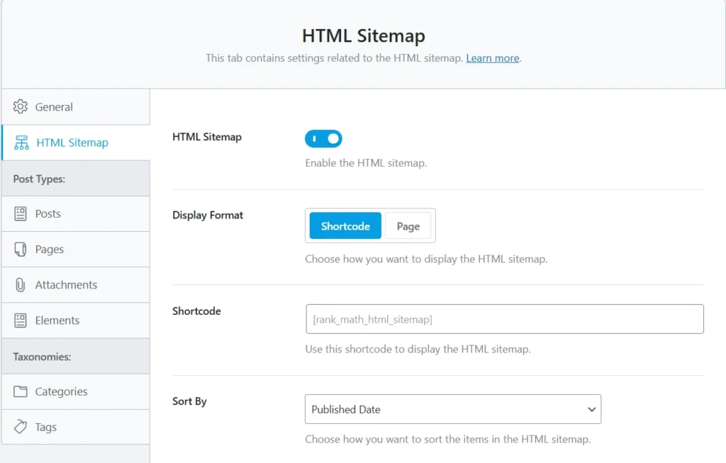 In Rank Math, enabling an HTML sitemap is simple. Go to WordPress Dashboard → Rank Math SEO → Sitemap module and turn it on. The plugin will generate a clean sitemap for AI and users.